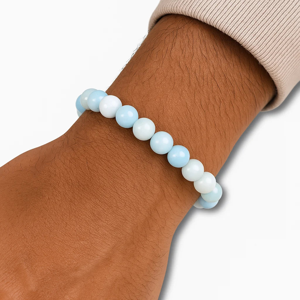 Símbolo de calma y equilibrio, este brazalete de amazonita natural armoniza sus emociones y favorece la serenidad interior. La amazonita inspira confianza, calma la mente y atrae energías positivas.