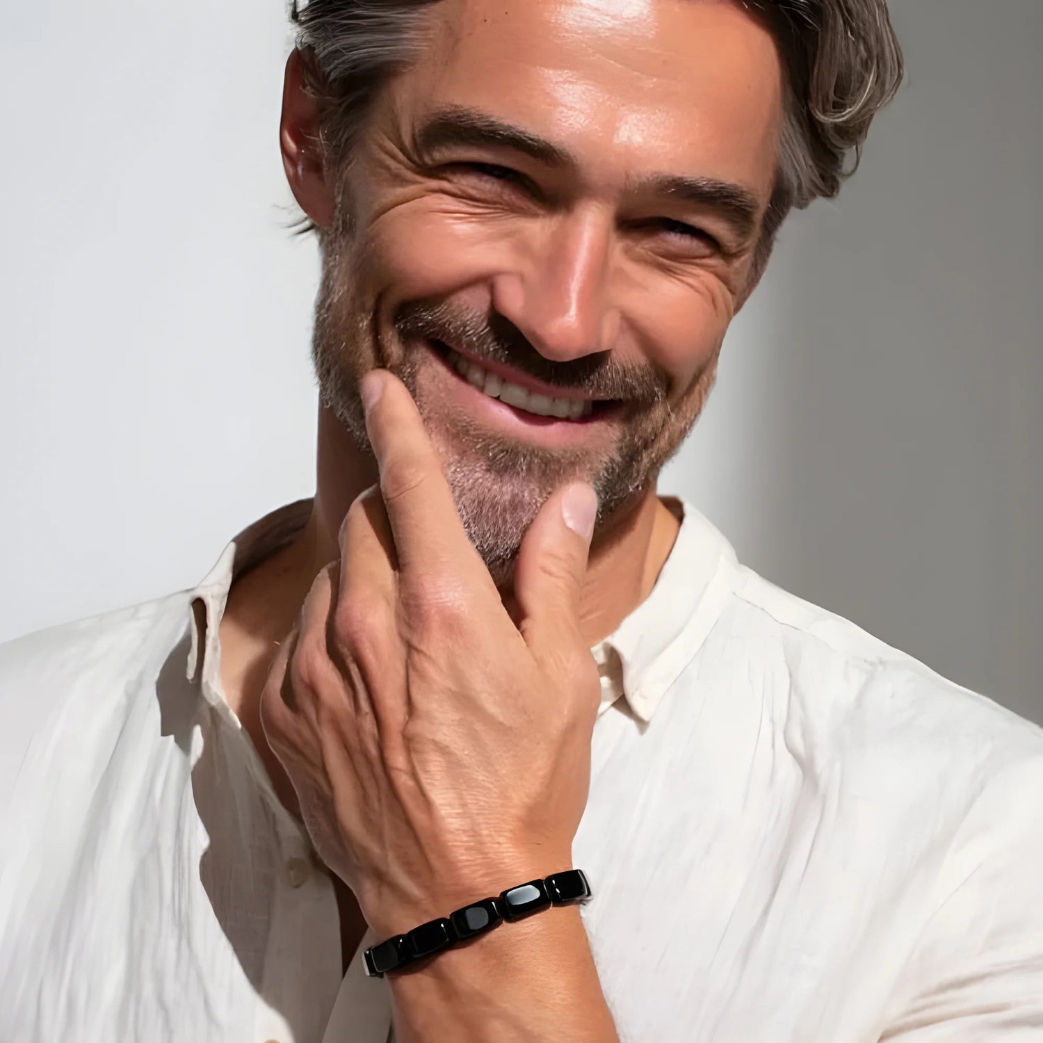 SÃmbolo de poder desde la época romana, este brazalete de hematita auténtica reaviva su fuerza interior y su masculinidad. La hematita estimula naturalmente su energÃa.